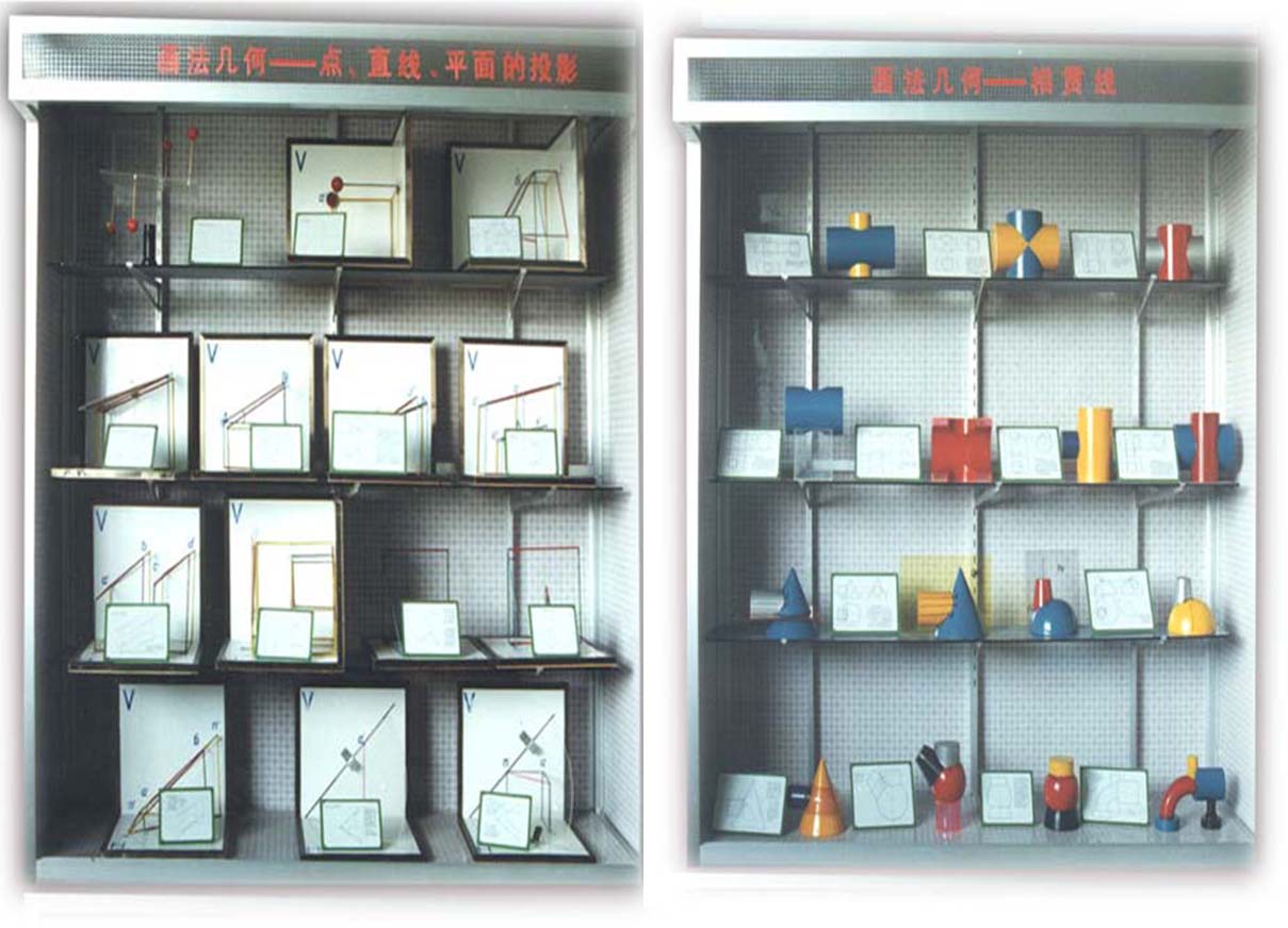 1、本陳列柜是接合普通高等教育“十五”國家級規(guī)劃教材《畫法幾何及機械制圖》(最新版)一書設(shè)計定型制作的,模型設(shè)計合理、制作精美,內(nèi)容制作新穎、圖文并茂。